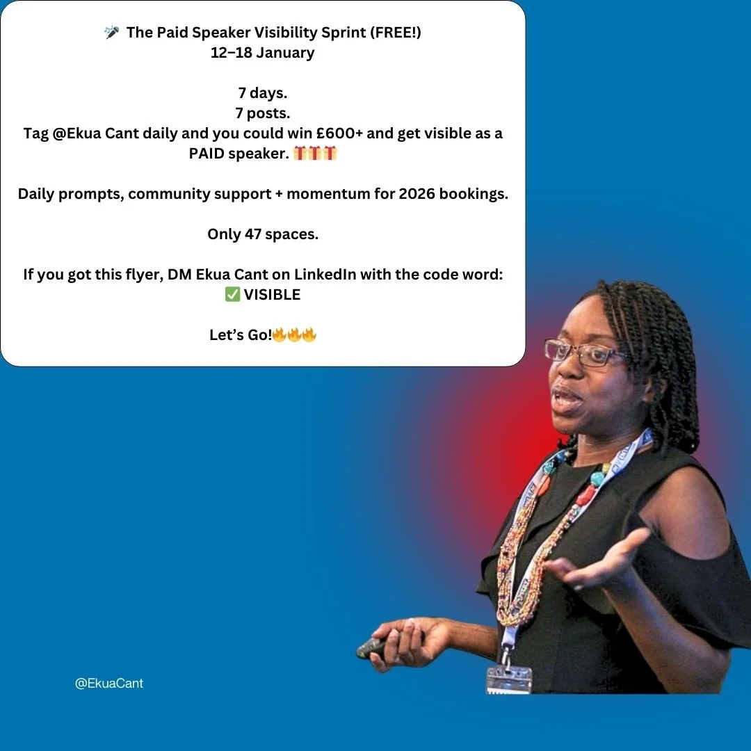 I’m Ekua Cant, Leadership Visibility Coach, Paid Speaker Coach, ex-LinkedIn Top Voice, award-winning speaker and author.